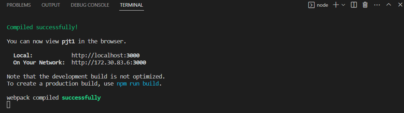 ▶ create react app은 컴퓨터 사양 혹은 환경에 따라 다르긴 하지만, 평균적으로 3~5분 정도면 생성이 완료되는 듯하다.